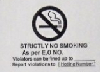 (g) Establish internal procedure and measures through which this Order shall be implemented and enfordes within the area of which he or she is in charge. This includes compliance with the smoking, sales. Distribution advertising and promotions restrictions (e.g. warning smoking violators in banned areas and requesting them to stop smoking), and if they refuse to comply, reporting the incident to the City/Municipal Health Office, the nearest peace officer, or to any member of the Smoke-Free Task Force;