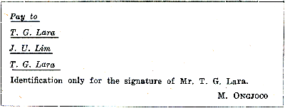 According to the defendant's theory, the check of April 6th was delivered to him by Lim, who "told him to collect it at the Philippine National Bank and to deliver the money to his cousin Suaco if the defendant could not find him (J. U. Lim)." The defendant cashed the check, and upon his return to the Hotel de France "he met Suaco who delivered to him a note of J. U. Lim in which it is stated that the money should be delivered to Suaco," to whom he delivered the money.