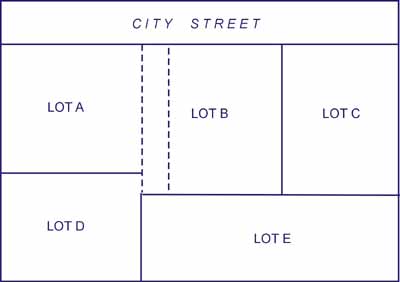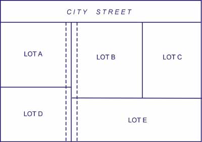 Lots A, B, and C were adjacent to a city street. But Lots D and E were not, they being interior lots. To give these interior lots access to the street, the heirs established in their extrajudicial partition an easement of right of way consisting of a 3-meter wide alley between Lots D and E that continued on between Lots A and B and on to the street. The partition that embodied this easement of right of way was annotated on the individual titles issued to the heirs.