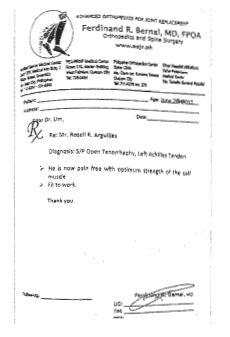 At this juncture, the Court notes that in arguing against petitioner's claim, respondents referred31 to a document denominated as Final Medical Report which was purportedly issued by a certain company-designated orthopedic surgeon named Dr. Ferdinand Bernal (Dr. Bernal). However, no copy of this document was attached to respondents' Position Paper.32 Petitioner likewise disputed33 the existence of the said document in his Rejoinder.34 The absence of this document was also noted35 by LA Hernandez in his foregoing Decision. Still, respondents continued to cite36 the same in their Notice of Appeal with Memorandum of Appeal37 without any evidentiary basis.