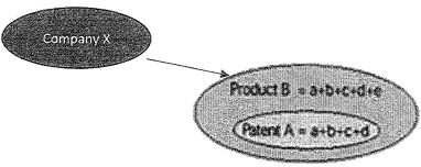 Product B has features covered by elements identical to a + b + c + d; with the addition of element e.